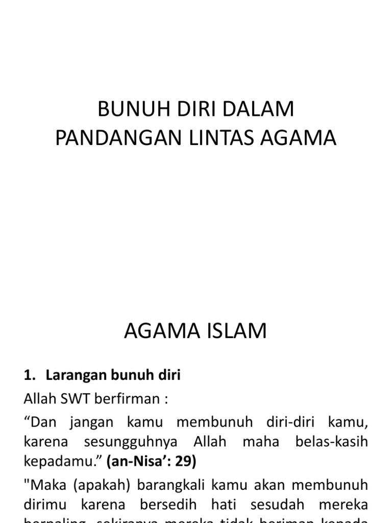 Related : Bunuh Diri Dalam Islam / Membunuh diri sendiri adalah sebuah tindakan sengaja yang menyebabkan kematian diri sendiri..