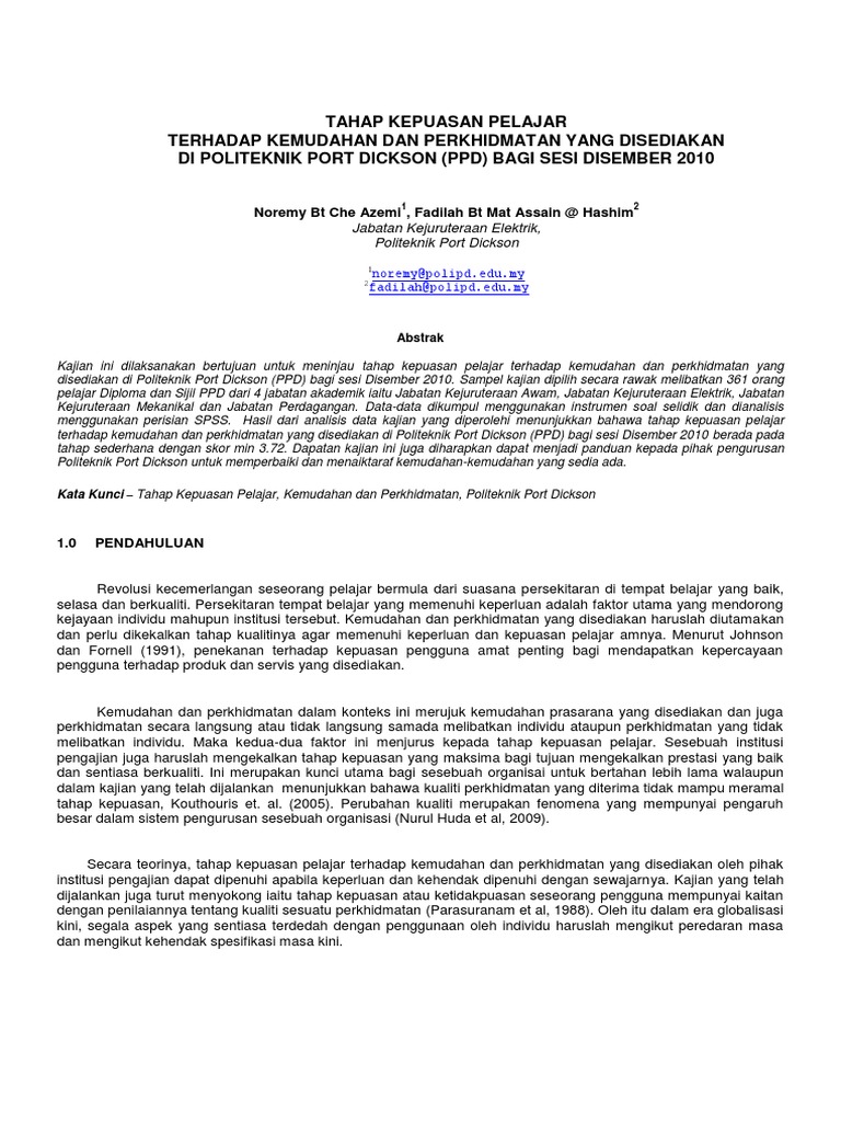 Memberi perkhidmatan yang memuaskan kepada pelanggan melalui penambahbaikan sistem pengurusan kualiti secara berterusan. 1) menganalisis tahap kepuasan pelanggan terhadap perkhidmatan utama yang. Hasil dapatan daripada soal selidik ini akan membantu pejabat hal ehwal pelajar untuk menilai semula dan membuat. Kepuasan pelanggan terhadap perkhidmatan kaunter pejabat pertanyaan balai polis pengkalan hulu, perak. epub kepuasan pelanggan terhadap kualiti perkhidmatan pdf epub copyright code: