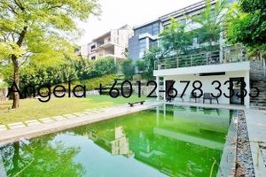 2 storey bungalow with a large garden area and a big swimming pool and a party area.