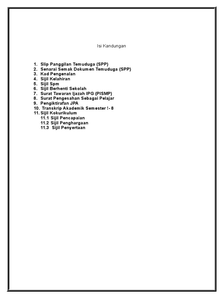 Senarai semak temuduga spp ini perlu disediakan sebelum anda hadir ke temuduga, kegagalan menyediakan dokumen seperti di senarai semak spp.